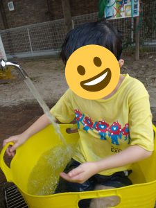「こうなったら・・・いっぱい濡れても一緒だー」、水の掛け合いの応酬です。。もう止まることなく激しく楽しんでくれていました(*^^)v