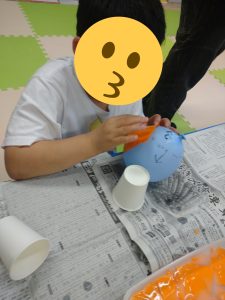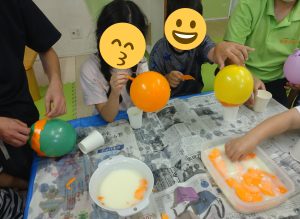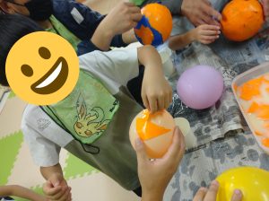 ノリが乾いたら風船を割って…